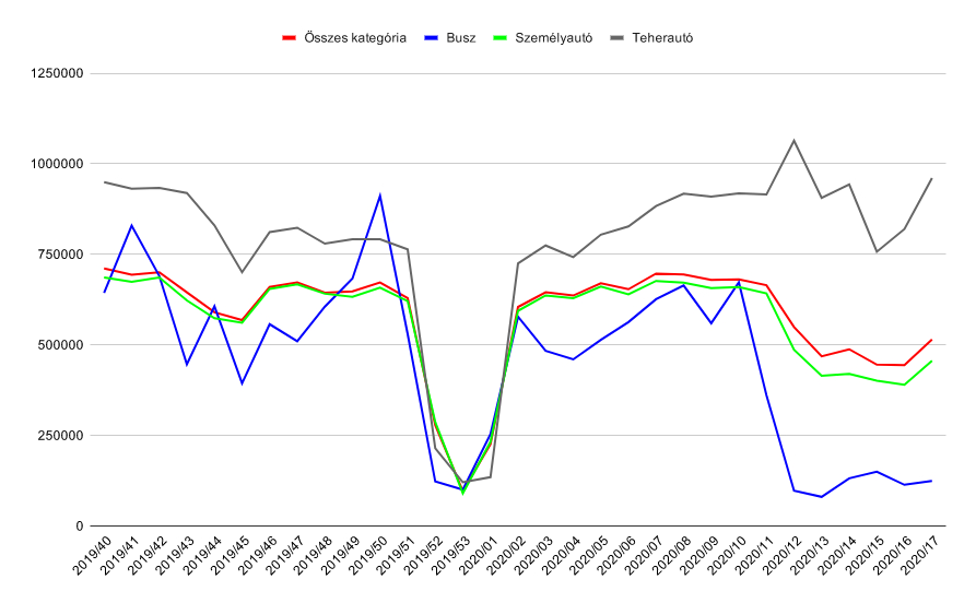 Ugyanakkor felettébb érdekes, hogy a vizsgált kategóriákra jellemző tendenciákat illetően eltérés fedezhető fel. Egyedül a teherautó forgalom produkált emelkedést a kialakult helyzet hatására, amit aztán hullámzó tendenciával de sikerült szinten tartani.